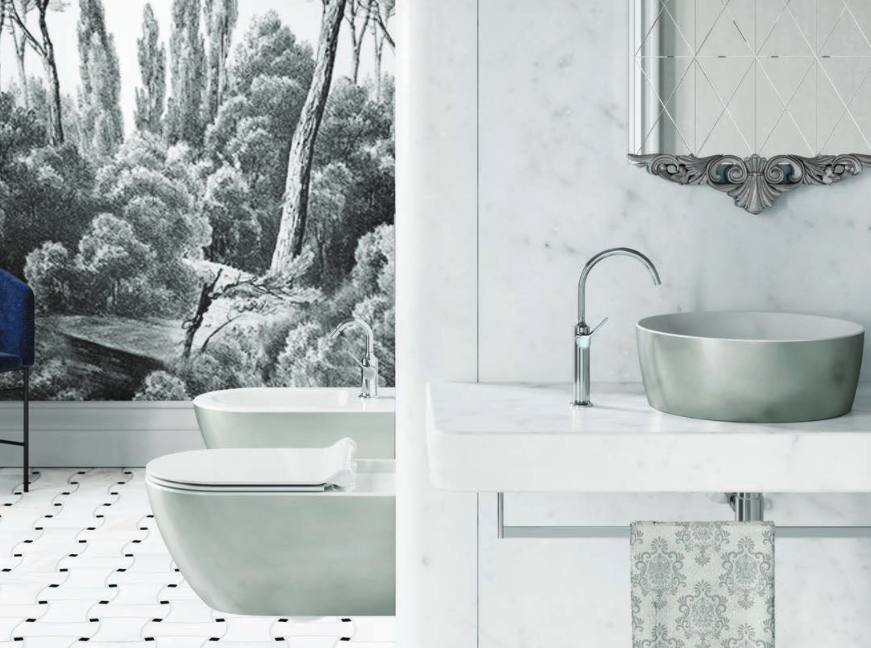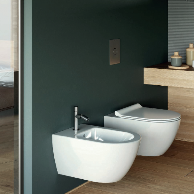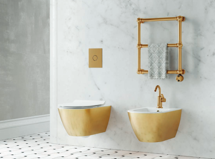 Λεκάνη με κάλυμμα βακελίτη SLIM soft close αποσπώμενο, λευκό με χρυσούς και χρωμέ μεντεσέδες